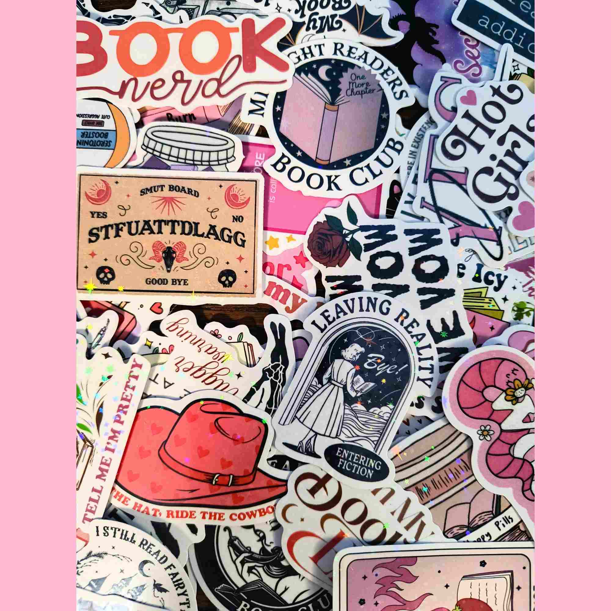 Surprise yourself with 10 randomly selected bookish stickers from our vibrant collection of book lover designs! Each pack is a delightful mystery, perfect for readers who love to decorate their favorite items with literary flair.